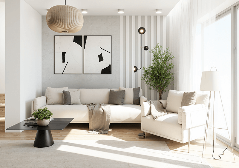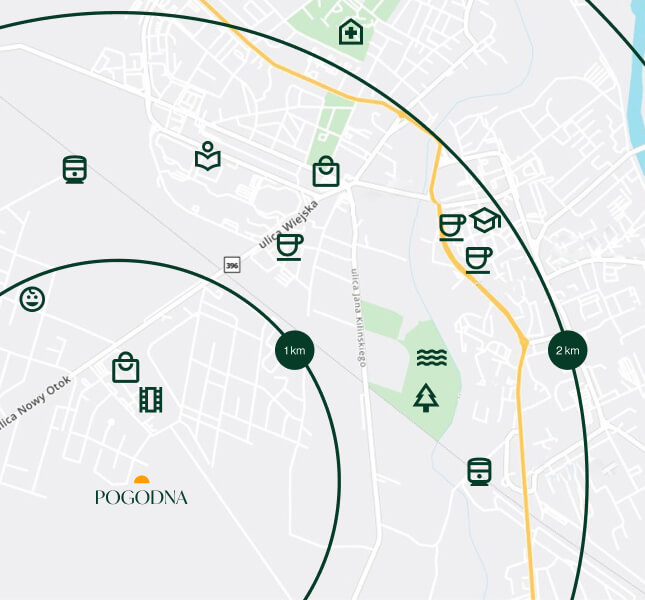 Osiedle POGODNA to kameralna inwestycja składająca się z 12 segmentów, realizowanych w dwóch etapach. W pierwszym etapie powstaną cztery dwupoziomowe mieszkania z ogródkami oraz dom jednorodzinny jako skrajny segment. Domy wyróżniają się nowoczesną, minimalistyczną architekturą, a każdy segment to starannie zaprojektowana przestrzeń, łącząca funkcjonalność z wygodą. Do każdego lokalu przypisane jest również naziemne miejsce postojowe.