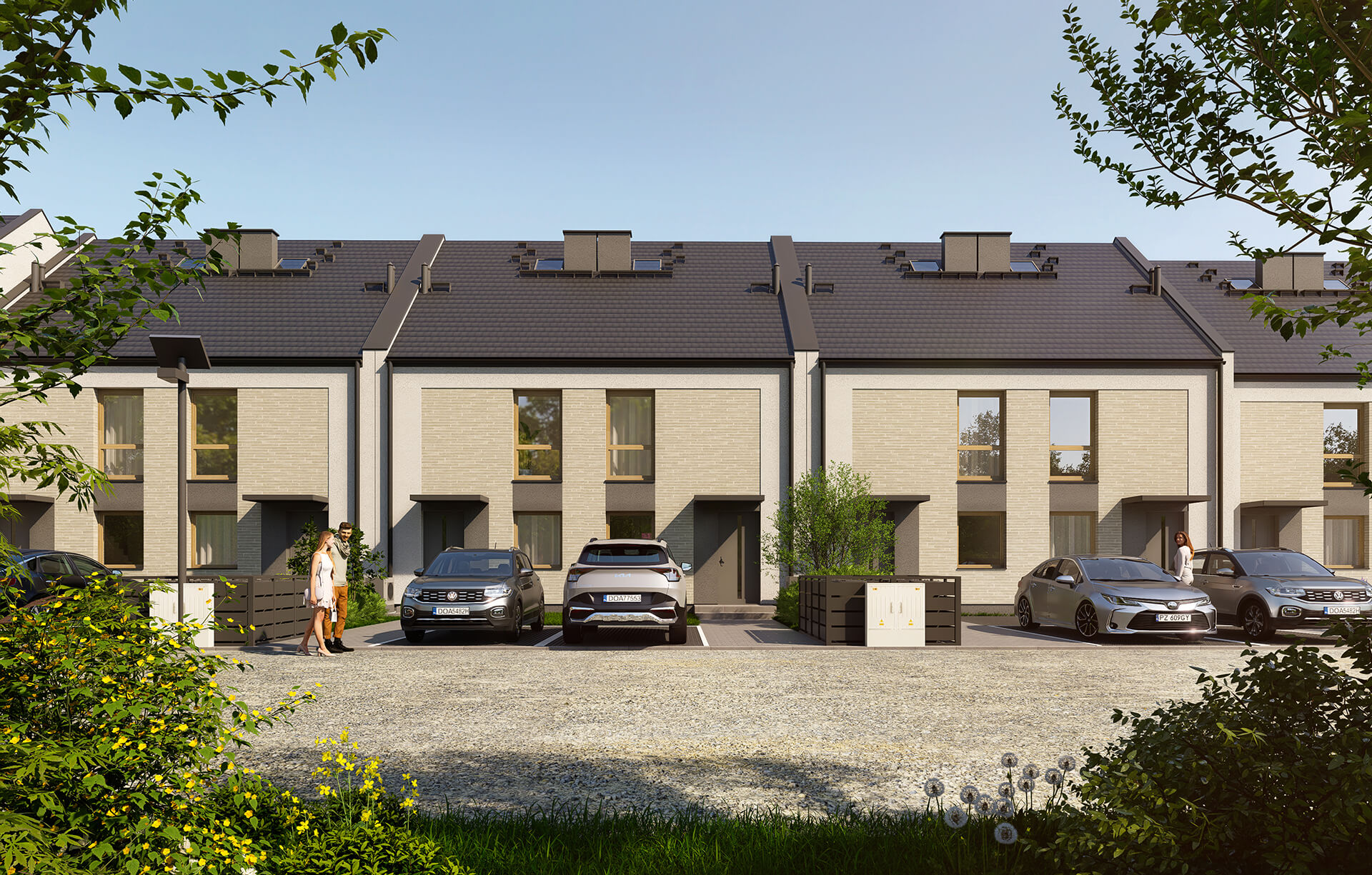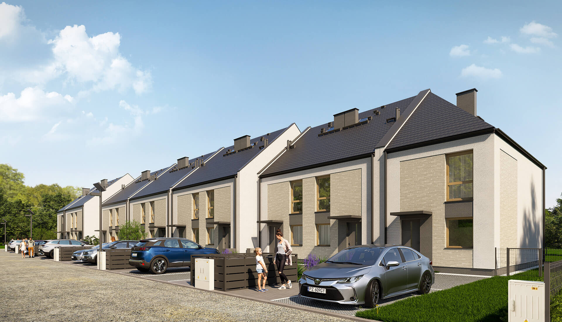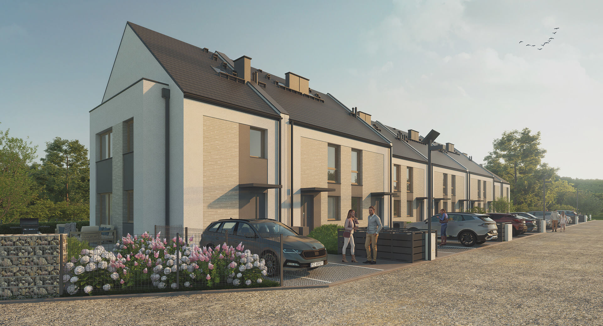 Osiedle POGODNA to kameralna inwestycja składająca się z 12 segmentów, realizowanych w dwóch etapach. W pierwszym etapie powstaną cztery dwupoziomowe mieszkania z ogródkami oraz dom jednorodzinny jako skrajny segment. Domy wyróżniają się nowoczesną, minimalistyczną architekturą, a każdy segment to starannie zaprojektowana przestrzeń, łącząca funkcjonalność z wygodą. Do każdego lokalu przypisane jest również naziemne miejsce postojowe.