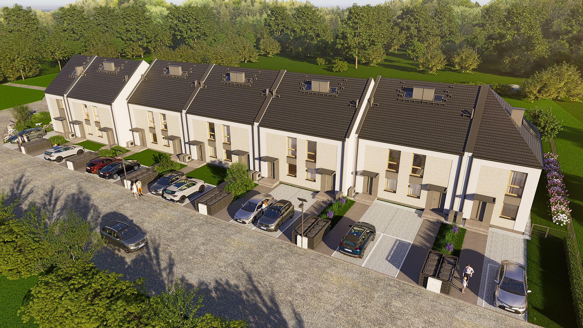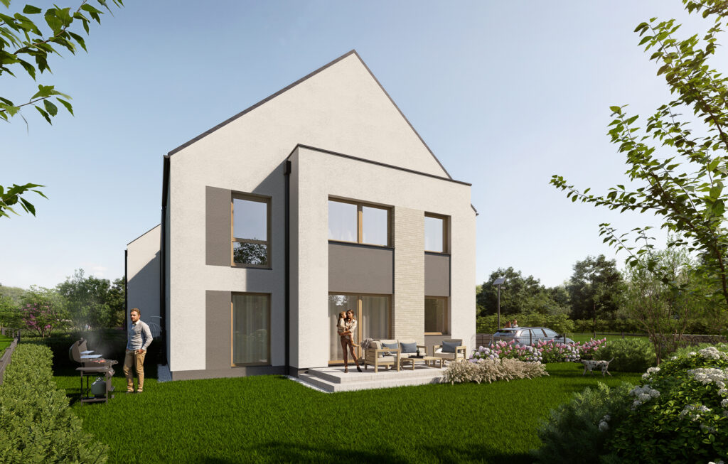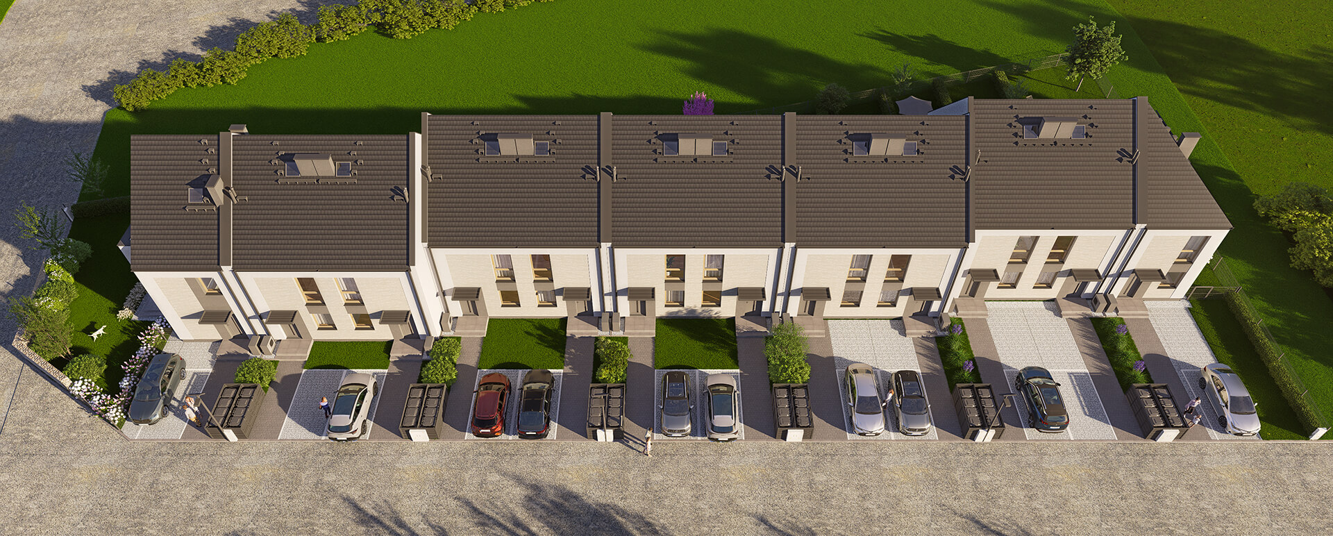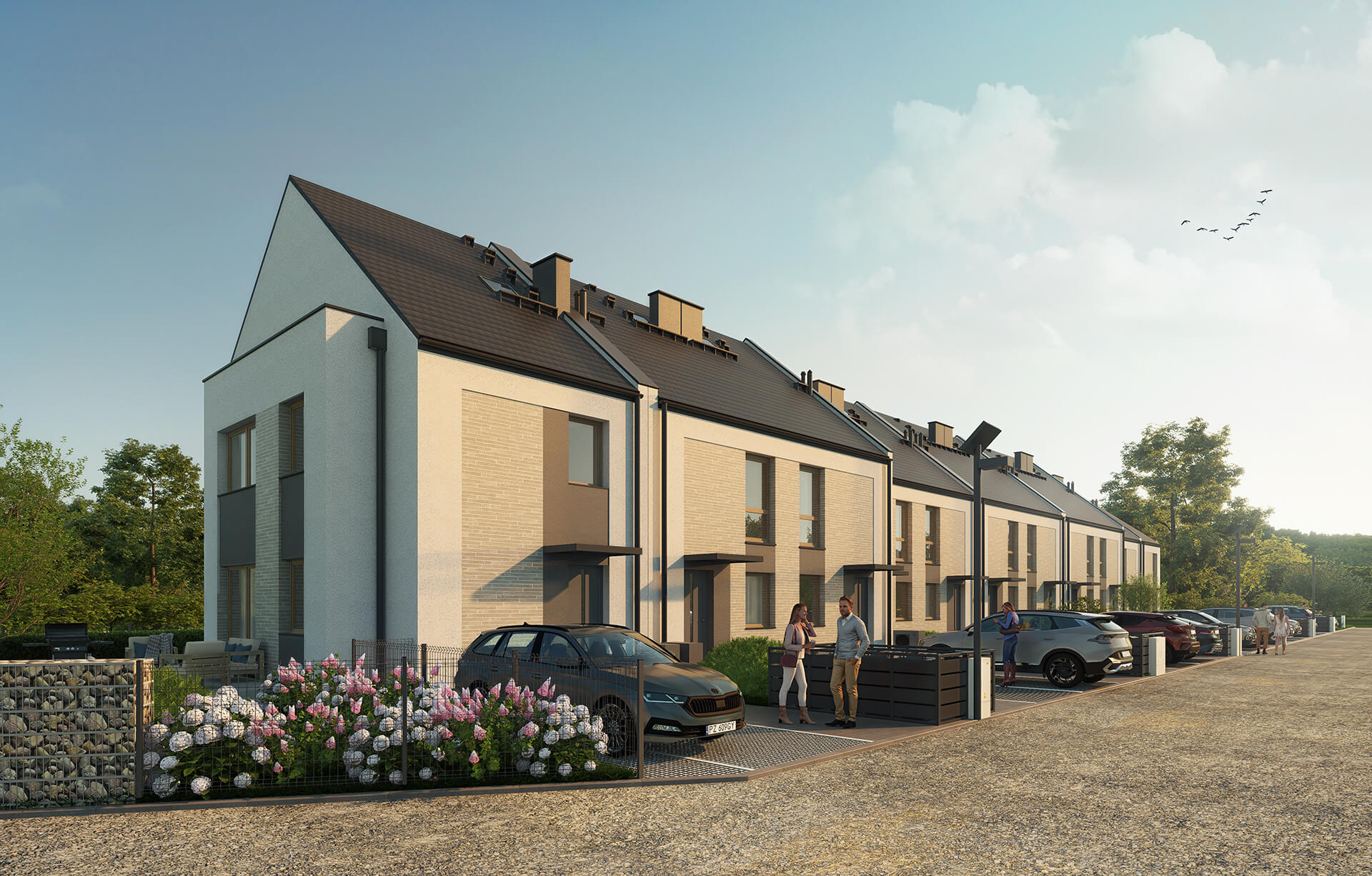 Osiedle POGODNA to kameralna inwestycja składająca się z 12 segmentów, realizowanych w dwóch etapach. W pierwszym etapie powstaną cztery dwupoziomowe mieszkania z ogródkami oraz dom jednorodzinny jako skrajny segment. Domy wyróżniają się nowoczesną, minimalistyczną architekturą, a każdy segment to starannie zaprojektowana przestrzeń, łącząca funkcjonalność z wygodą. Do każdego lokalu przypisane jest również naziemne miejsce postojowe.
